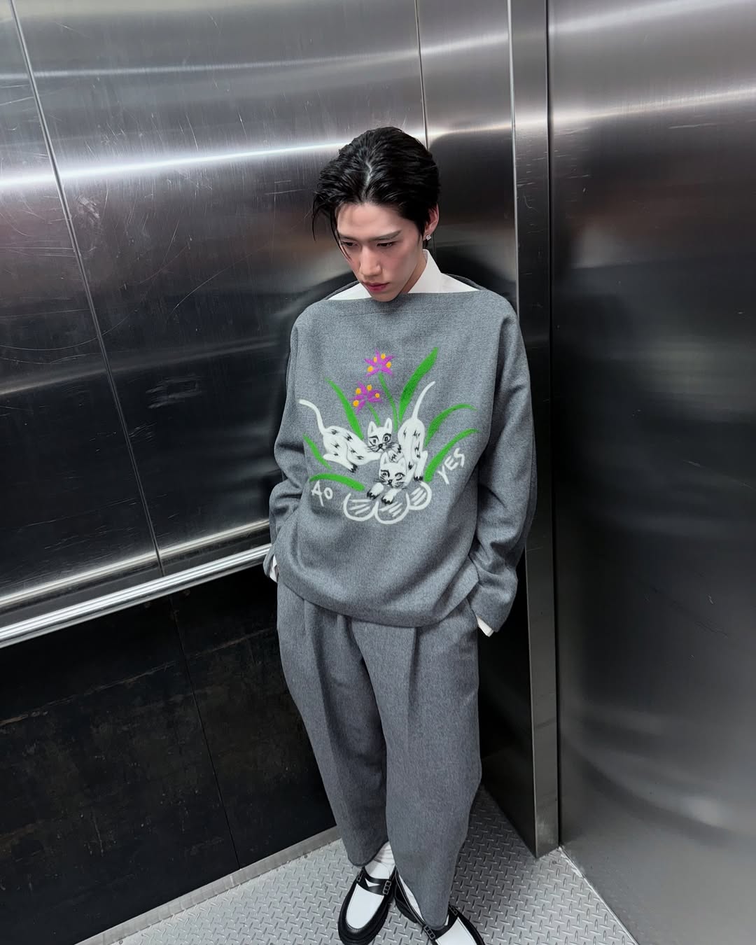 Cat punch needle melton top and pants